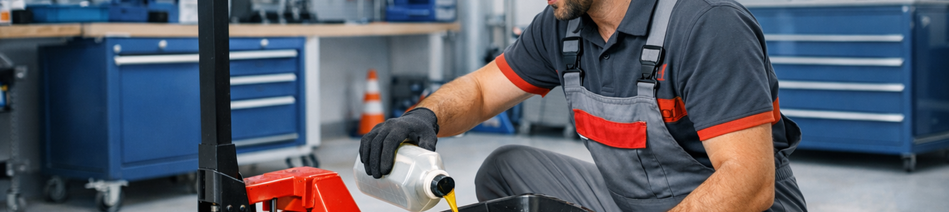 Zawsze należy sprawdzić w instrukcji obsługi paleciaka, jaki olej jest rekomendowany do danego modelu wózka paletowego.